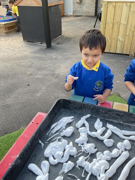 - Leading their own learning with exciting topics like sharks and spiders, asking lots of questions and exploring thier ideas.